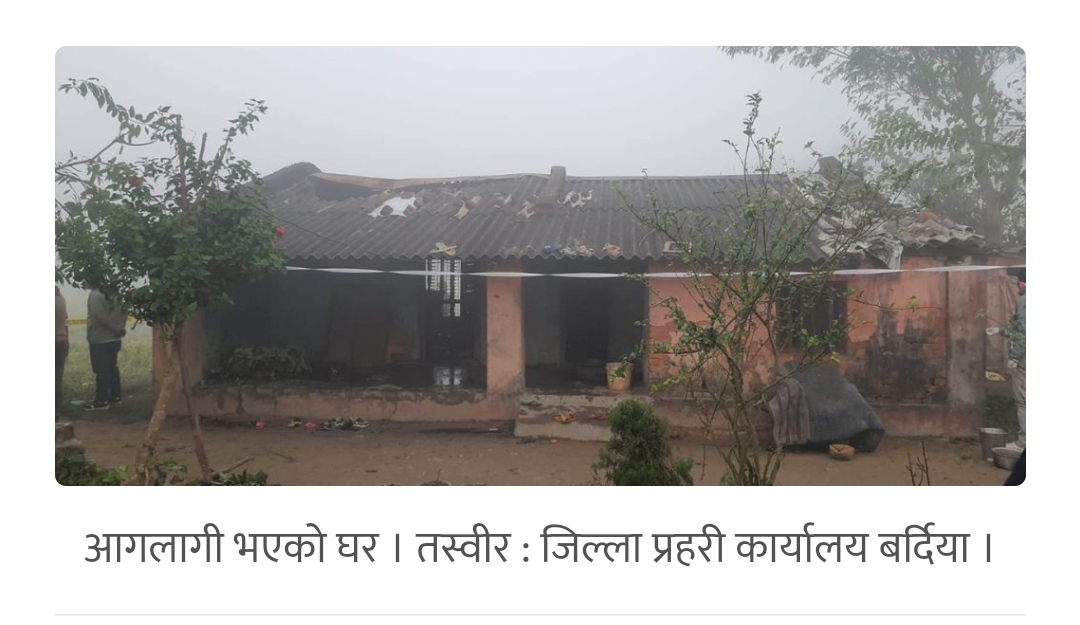 बर्दिया — बर्दियाको गुलरिया-४, तुलापुरस्थित केराबारी नजिक रहेको टाइल लगाएको घरमा आगलागी हुँदा चार जनाको मृत्यु भएको छ । राती करिब १० बजेतिर आगलागी भएको हो । जिल्ला प्रहरी कार्यालयका अनुसार चारै जनाको शव अहिले निकाल्ने प्रयास भइरहेको छ । एक जना घाइतेलाई उपचारका लागि अस्पताल लगिएको छ । मृत्यु हुनेमा १८ महिनाका […]