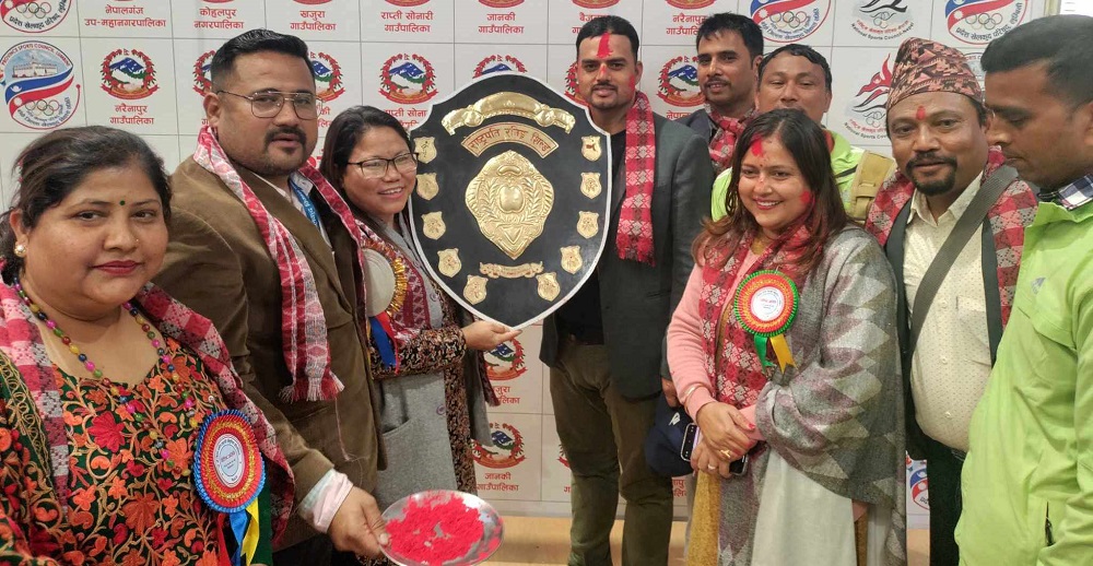 नेपालगन्ज। १५ औं जिल्ला स्तरीय राष्ट्रपति रनिङ शिल्ड खेलकुद प्रतियोगिता २०८० को उपाधि कोहलपुर नगरपालिकाले हात पारेको छ । योसँगै लगातार तेस्रो पटक शिल्ड जित्दै कोहलपुरले ह्याट्रीक गर्न पनि सफल भएको हो । यसअघि कोहलपुरले लगातार दुई पटक पहिलो स्थानसहित उपाधि जितेसकेको थियो । प्रतियोगितामा जिल्लाका सात वटा स्थानीय तहबाट छनोट भएर आएका एक […]