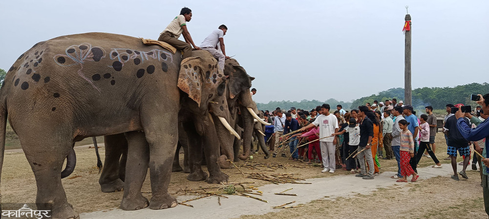 बर्दिया/ईकान्तिपुर — मानव र हात्तीबिच सहअस्तित्व कायम गर्न थारु समुदायका गुरुबाले हात्ती पूजा गरेका छन् । बर्दिया राष्ट्रिय निकुञ्जको अगुवाइमा ठाकुरबाबा नगरपालिका–९ हात्तीसार स्थित मंगलबार बिहान हात्ती पूजा गरिएको हो । स्थानीय थारु गुरुबा(पुजारी)हरूले हात्तीलाई शान्त गर्न पूजा गरेका छन् । हात्तीसारस्थित रहेका हात्तीलाई उखु, केरा, केरालगायत फलफूल खुवाएर हात्ती पूजा गरिएको छ । […]