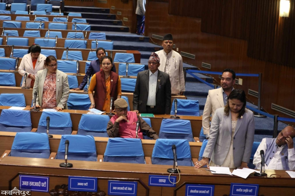 काठमाडौँ/ईकान्तिपुर — प्रतिनिधिसभाको मंगलबारको बैठक सत्तारुढ दलहरू नागरिक उन्मुक्ति पार्टी र जनमत पार्टीले केहीबेर अवरुद्ध गरेका छन् । नागरिक उन्मुक्ति पार्टीका संरक्षक रेशम चौधरीलाई वैशाख १७ मा पक्राउ गरिएको विषयमा छानबिन माग गर्दै दुवै पार्टीले प्रतिनिधिसभा बैठकको कामकारबाही अवरुद्ध गरेका हुन् । सभामुख देवराज घिमिरेलाई सरकारका नाममा रुलिङको माग गर्दै दुवै पार्टीले सदन अवरुद्ध गरेका […]