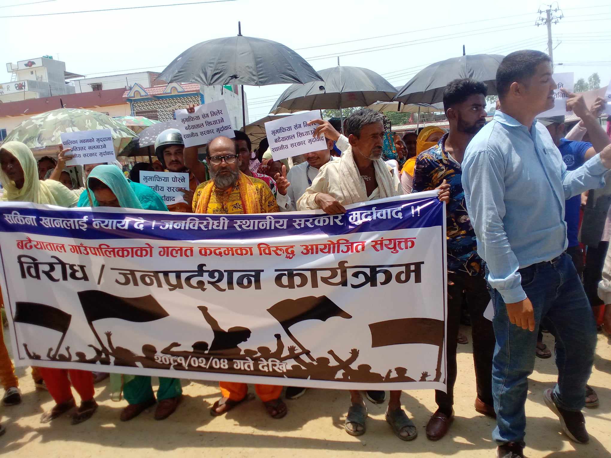 बर्दिया। बर्दियाको बढैयाताल गाउँपालिका ६ मैनापोखरका सकिना खानको घर भत्काईएको घट्रनाको ब्यापक बिरोध भएको छ । भुमि अधिकार मंच बर्दिया र पालिकाका प्रमुख राजनीतिक दलहरुले शुक्रबार बढैयाताल गाउँपालिकाको गेट अगाडी बिरोध तथा जनप्रर्दशन गरेकाछन् । बिरोध सभालाई सम्बोधन गर्दै नागरिक उन्मुक्ति पार्टीका महासचिव ठाकुर सिंह थारुले सकिना खानको घर भत्काइनु पालिकाको अमानबिय काम भएको बताए […]