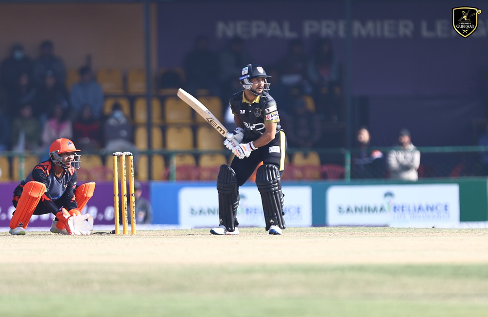 नेपाल प्रिमियर लिग (एनपीएल) को बुधबारको पहिलो खेलमा कर्णाली याक्समाथि काठमाडौं गुर्खाजले ३ विकेटको रोमाञ्चक जित हात पारेको छ । कर्णालीका कप्तान करण केसीले १० बलमा २८ रन बनाएपछि काठमाडौंले जित हात पारेको हो । उनले सुमित महर्जनसँग छैटौं विकेटका लागि ४५ रनको साझेदारी गरेपछि खेल काठमाडौंको पक्षमा गएको हो । टस हारेर […]