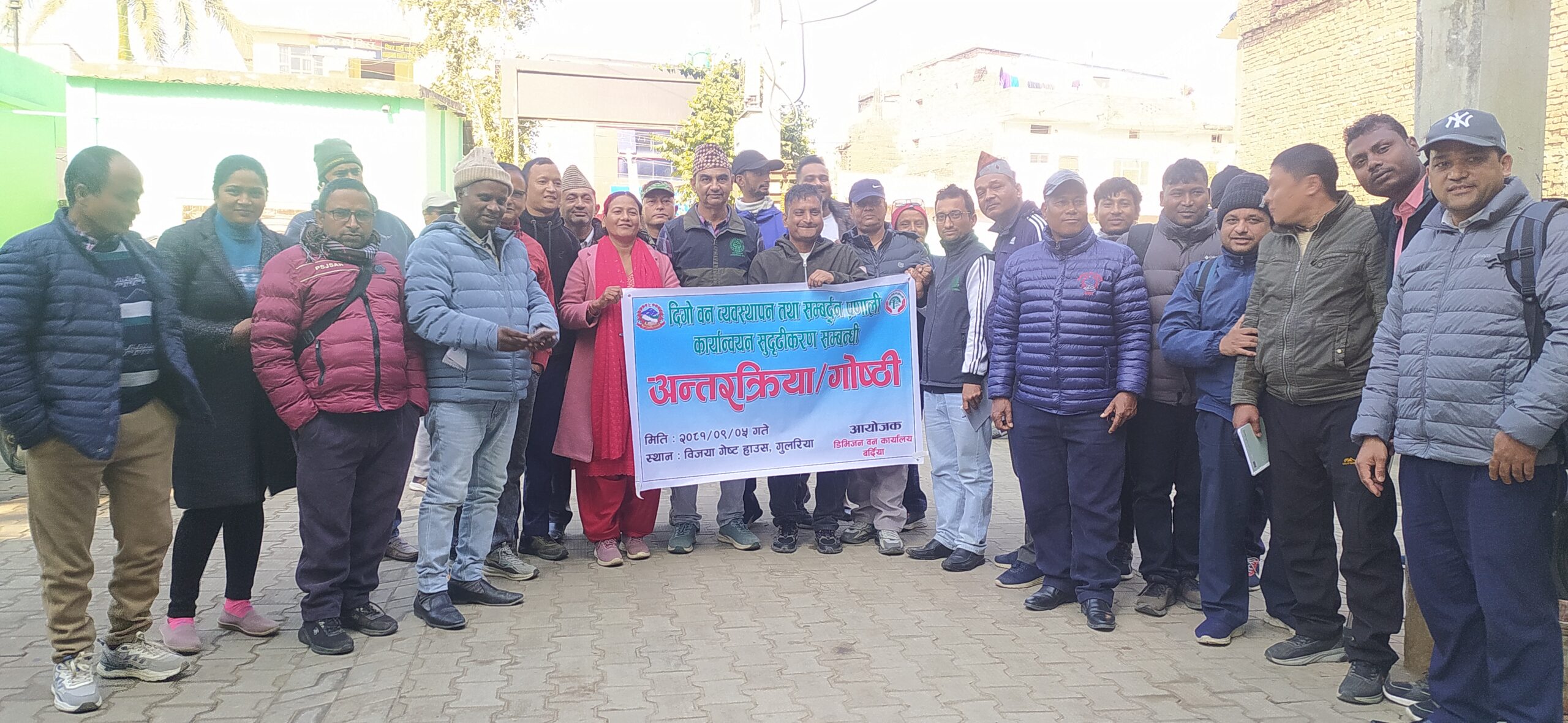 ५ पौष ०८१ , नेपालमा बन ब्यबस्थापनको सबै भन्दा ठुलो चुनौति भनेको नै बन अतिक्रमण भएको डिभिजिन बन कार्यालय बर्दियाका प्रमुख विजयराज सुबेदीले बताउनु भयो । डिभिजन बन कार्यालय बर्दियाले आयोजना गरेको दिगो वन ब्यबस्थापन तथा सम्बद्र्धन प्रणाली कार्यान्वयन सुदृढिकरण सम्बन्धीको अन्तरक्रिया कार्यक्रममा प्रमुख सुुबेदीले सो कुरा बताउनु भएको हा्े । बर्दिया जिल्लाको बनको अवस्थाका […]