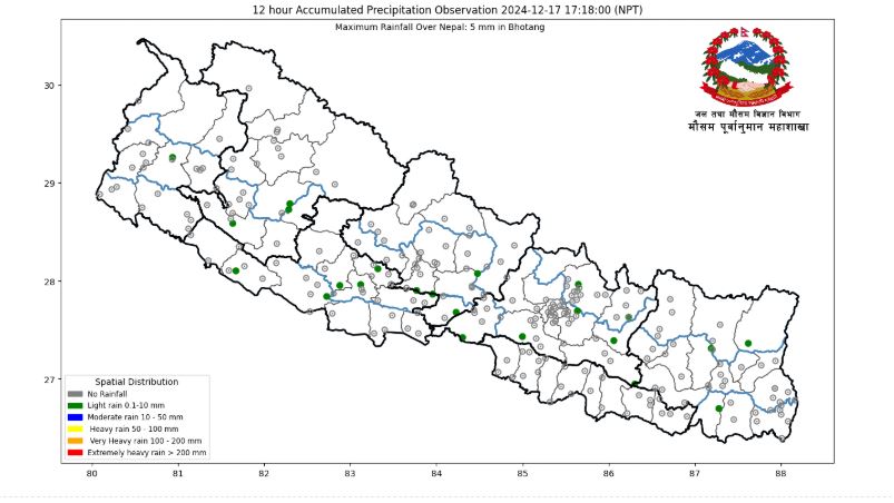 प्रदेश समय/अवधि मौसम पूर्वानुमान काेशी प्रदेश दिउँसो हिमाली क्षेत्रमा आंशिक बदली देखि मुख्यतया सफा रहने सम्भावना रहेकाे छ । पहाडी क्षेत्रमा आंशिक बदली देखि मुख्यतया सफा रहने सम्भावना रहेकाे छ । तराई क्षेत्रमा आंशिक बदली देखि मुख्यतया सफा रहने सम्भावना रहेकाे छ । राती हिमाली क्षेत्रमा आंशिक बदली देखि मुख्यतया सफा रहने सम्भावना रहेकाे छ […]