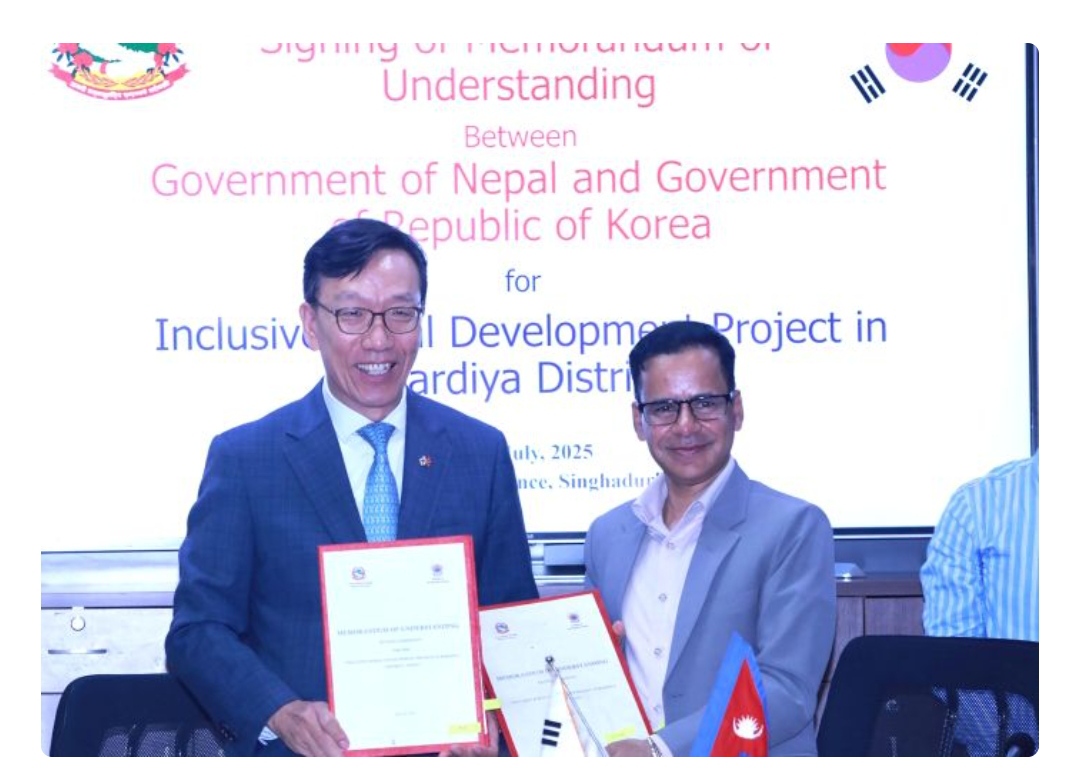 काठमाडौँ, साउन २ गते । नेपाल सरकार र कोरियाली सरकारबीच बर्दिया जिल्लामा समावेशी ग्रामीण विकास परियोजना (आइआरडिपी) कार्यान्वयनका लागि सम्झौतापत्र (एमओयु) मा हस्ताक्षर भएको छ । अर्थ मन्त्रालयमा शुक्रबार एक औपचारिक कार्यक्रमबीच मन्त्रालयका सचिव घनश्याम उपाध्याय र नेपालका लागि कोरियाली राजदूत पार्क तई यङले उक्त सम्झौतापत्रमा हस्ताक्षर गर्नुभएको हो । यो परियोजनाका लागि कोरिया […]