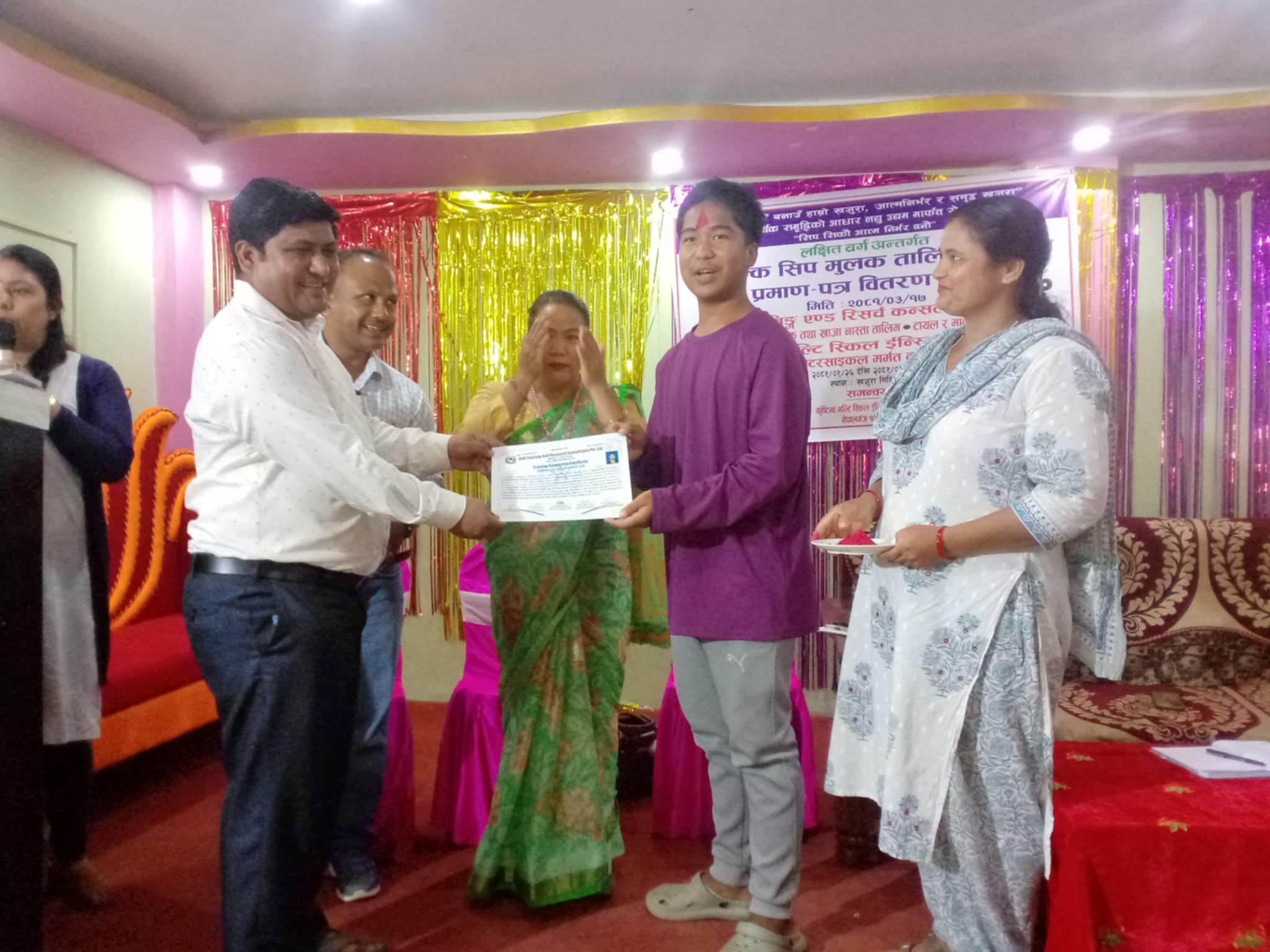 नेपालगन्ज, १७ असार २०८१ बाँकेको खजुरा गाउँपालिकाले २ सय जना युवालाई बिभिन्न सिपमुलक तालिम प्रदान गरी प्रमाणपत्र बितरण गरेको छ । सोमबार समाजिक बिकास शाखा प्रमुख कृष्ण कुमारी पोखरेलको अध्यक्षतामा कार्यक्रम गरी गाउँपालिकाले प्लाम्बर, कुक तथा खाजा नस्ता, टायल र मार्बल फिक्चर र मोटर साईकल मर्मत गर्ने तालिम प्रदान गरि प्रमाणपत्र बितरण गरिएको छ । […]