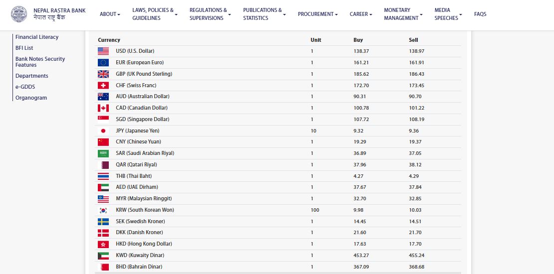 काठमाडौं, २० साउन । नेपाल राष्ट्र बैंकले आज (मंगलबार, साउन २० गते) का लागि विदेशी मुद्राको विनिमय दर सार्वजनिक गरेको छ। प्रमुख मुद्राहरूको दरमा सामान्य उतारचढाव देखिएको छ भने अमेरिकी डलरको भाउमा केही वृद्धि भएको छ। अमेरिकी डलर आज एक डलर किन्नको लागि १३९ रुपैयाँ ९६ पैसा तिर्नुपर्छ भने बेच्दा १४० रुपैयाँ ५६ पैसा […]