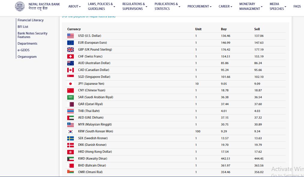 काठमाडौ, चैत्र १७ । नेपाल राष्ट्र बैंकले आइतबारका लागि विदेशी मुद्राको विनिमयदर सार्वजनिक गरेको छ । जसअनुसार भारतीय रूपैयाँ १०० को खरिद दर १६० रूपैयाँ हुदाँ बिक्री दर १६०.१५ पैसा कायम गरिएको छ । नेपाल राष्ट्र बैंकले सार्वजनिक गरेको विनिमय दर अनुसार आज एक अमेरिकी डललको खरिददर १३६ रूपैयाँ ४६ पैसा र बिक्रीदर १३७ […]