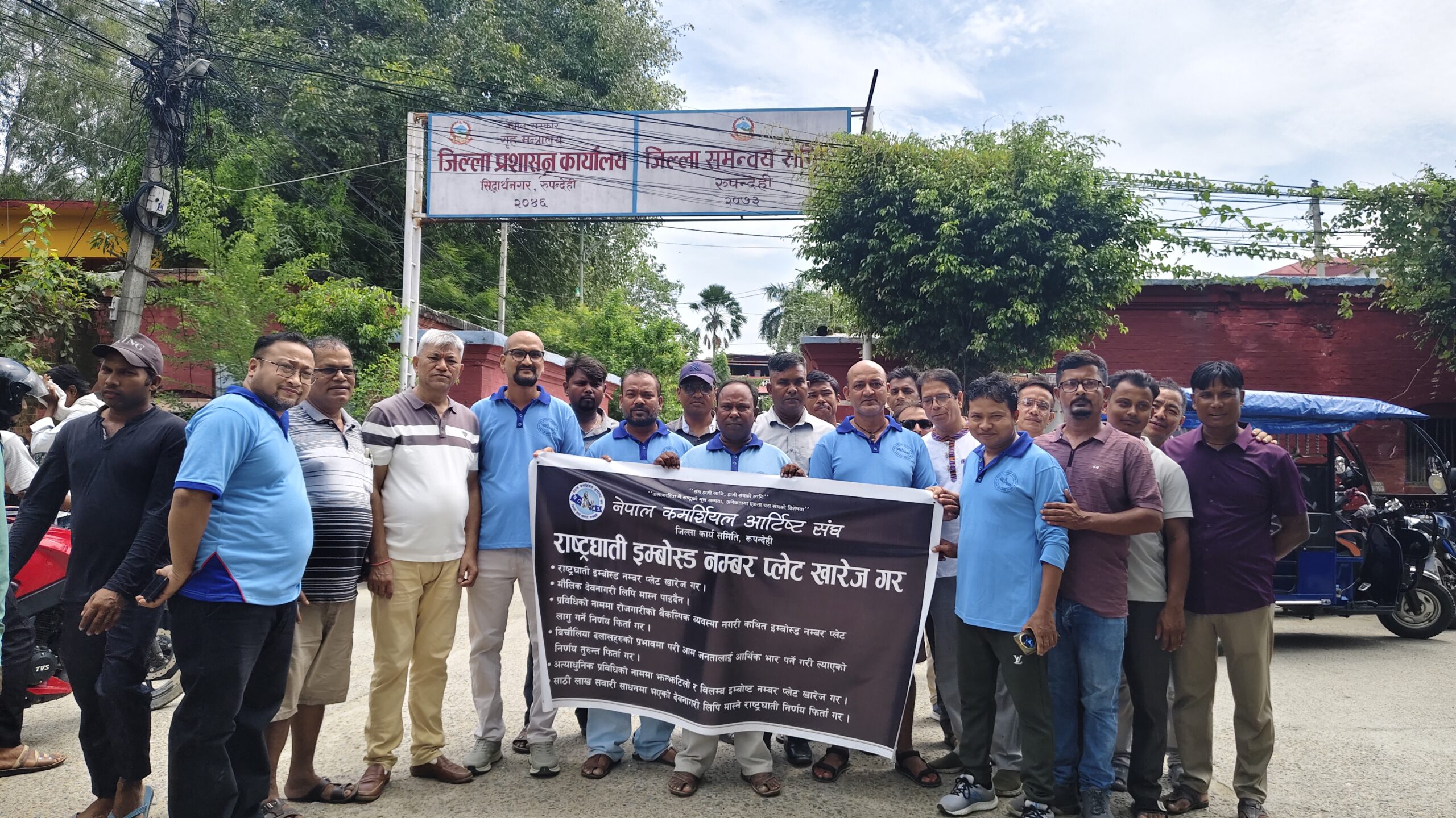 भैरहवा, १८ भदाै । यातायात व्यवस्था विभागले आगामी असोज १ गतेदेखि सवारीसाधनमा अनिवार्य इम्बोस्ड नम्बर प्लेट जडान गर्नुपर्ने व्यवस्था ल्याए पछि नेपाल कमर्शियल आर्टिष्ट संघ जिल्ला कार्य समिति रुपन्देहीले विरोध जनाएको छ । सरकारले ल्याएको इम्बोस्ड नम्बर प्लेट योजना राष्ट्रघाती भएको ठहर गर्दै सोमबार जिल्ला कार्य समितिले जिल्ला प्रशासन कार्यालय, रुपन्देहीमार्फत प्रधानमन्त्री तथा मन्त्रिपरिषद् […]