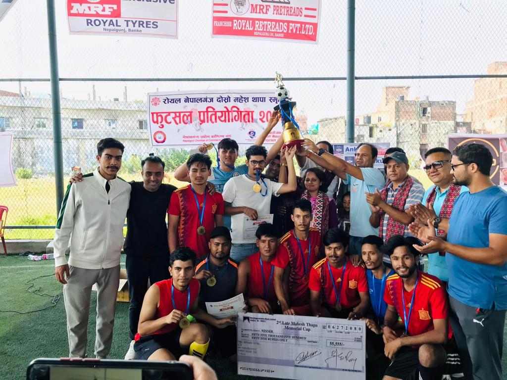 रोयल नेपालगन्ज दोस्रो महेश थापा स्मृति फुटसल प्रतियोगिताको उपाधी योङ लाइन एफसीले जितेको छ । शनिवार भएको फाइनल खेलमा कोहलपुर फुटसल एण्ड गेम संसारलाई ट्राइबेकरमा २–१ गोलले पराजित गर्दै योङ लाइन्सले उपाधी जितेको हो । योङ लाइन्सले सेमिफाइनलमा आयो–गयो एफसीलाई ८–५ गोल र कोहलपुरले रोयल नेपालगञ्ज फुटबल क्लवलाई ट्राइबेकरमा २–१ गोलले पराजित गरेको थियो । […]