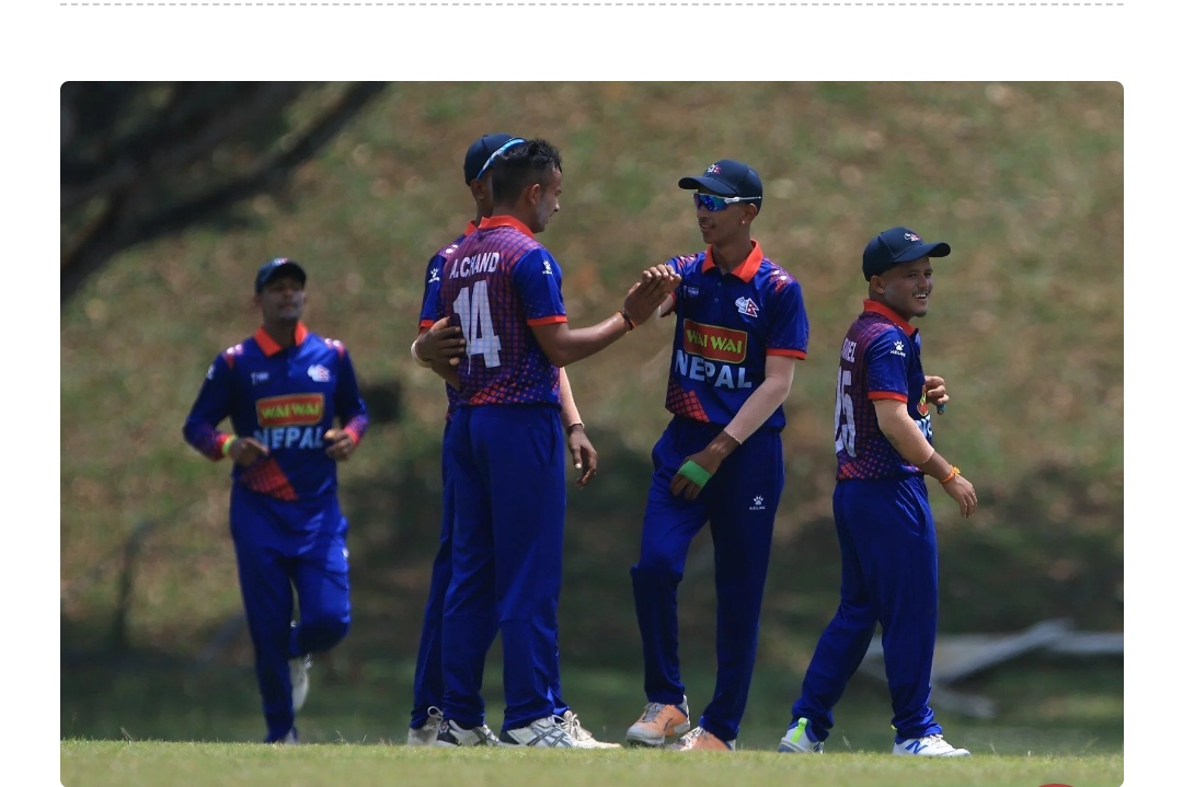 कात्तिक, काठमाडौं । मलेसियामा भइरहेको एसीसी यू-१९ प्रिमियर कपमा नेपालले साउदी अरबलाई ३०१ रनको फराकिलो अन्तरले पराजित गरेको छ । ३४८ रनको विशाल लक्ष्य पछ्याएको साउदी अरब १९.१ ओभरमा ४६ रन बनाएर अलआउट भएपछि नेपालले फराकिलो जित हात पारेको हो । अनलाईन खबरका अनुसार योसँगै नेपाल समूह एको विजेता हुँदै सेमिफाइनलमा प्रवेश गरेको छ […]