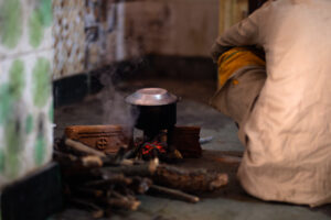 मध्याह्न सवा १२ बजेको थियो। उनले चामल, दाल, तरकारी, ओढ्ने, ओछ्याउने जम्मै बोकेर ल्याएका रहेछन्। धर्मशालामा आफैं पकाएर खान मिल्ने भान्सा रहेछ। बोराबाट चामल, दाल र आलु निकाले। पकाउन भान्सातिर लागे। भान्साको एक छेउमा अलिकति दाउरा थुपारिएको थियो। “हिजो यतैको जंगलतिरबाट ल्याएको,” उनले भने।