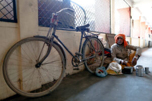 धर्मशालामा पुगेपछि साइकल पनि सिंढी चढाएर ‘प्यासेज’ मा पुर्याए। “हिजो राति यहीं सुतेको,” साइकल अड्याउँदै उनले मार्बल बिछ्याएको भुइँमा ओछ्यान देखाए। भोलि पल्टको पेशीमा हाजिरी लगाउन अझै एक रात त्यहीं बस्ने पनि उनले सुनाए।