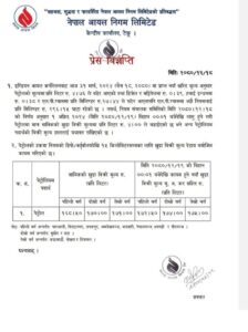 यस्तै एलपी ग्यासमा प्रतिसिलिण्डर २७ रुपैयाँ ४४ पैसा मूल्य घटेर आएको छ । तर अहिले पनि एलपी ग्यासमा २९६ रुपैयाँ १५ पैसा घाटा रहेको भन्दै सञ्चालक समितिले मूल्य हेरफेर नगर्ने निर्णय गरेको हो ।