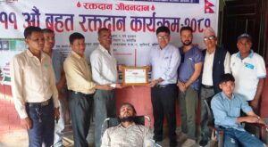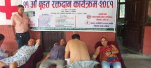 “रक्तदान जीवनदान” भन्ने उद्देश्यका साथ बर्दियाको भुरीगाउँमा ११ औंं पटक बृहत रक्तदान गरिएको छ । गएको जेष्ठ ९ गते रक्तदान कार्यक्रममा महिला पुरुष गरी ८८ जनाले रक्तदान गरेका छन् । ठाकुरबाबा नगरपालिका सैनवारको आयोजनामा र नेपाल स्वयंसेवी रक्तदाता समाज बर्दिया शाखाको संयुक्त आयोजनामा रक्तदान गरिएको छ । वृहत रक्तदान कार्यक्रममा ठाकुरबाबा नगरपालिका सैनवारका नगर प्रमुख तिलकराम लम्साल, नेपाल स्वयंसेवी रक्तदाता समाज बर्दियाका अध्यक्ष तथा केन्द्रिय सदस्य प्रेम प्रसाद लम्साल, नेपाल रेडक्रस सोसाइटी उपशाखा ठाकुरबाबा भुरीगाउँका सभापति यज्ञ प्रसाद नेपालले प्रादेशिक रक्त सञ्चार केन्द्र नेपालगन्जका प्राविधिकद्वय महेश दहित र महेश राना क्षेत्रीलाई संयुक्त रुपमा रगत संकलन गर्ने पाकेट हस्तान्तरण गरीे कार्यक्रमको उद्घाटन गरेका थिए ।