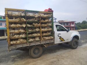 तिन लाख भन्दा बढी मुल्यको ७ सय १८ वटा ब्रोईलर कुखुरा यहि २४ गते बिहिवार बिहान अन्दाजी ४ः३० बजेको समयमा बढैयाताल गाउँपालिका वडा नं.३ स्थित भोलागौडी पेट्रोलपम्प नजिक वाट गाडी सहित कुखुरा नियन्त्रणमा लिएको कुखुरा पालक संघका सदस्य नरबहादुर रावतले जानकारी दिए ।