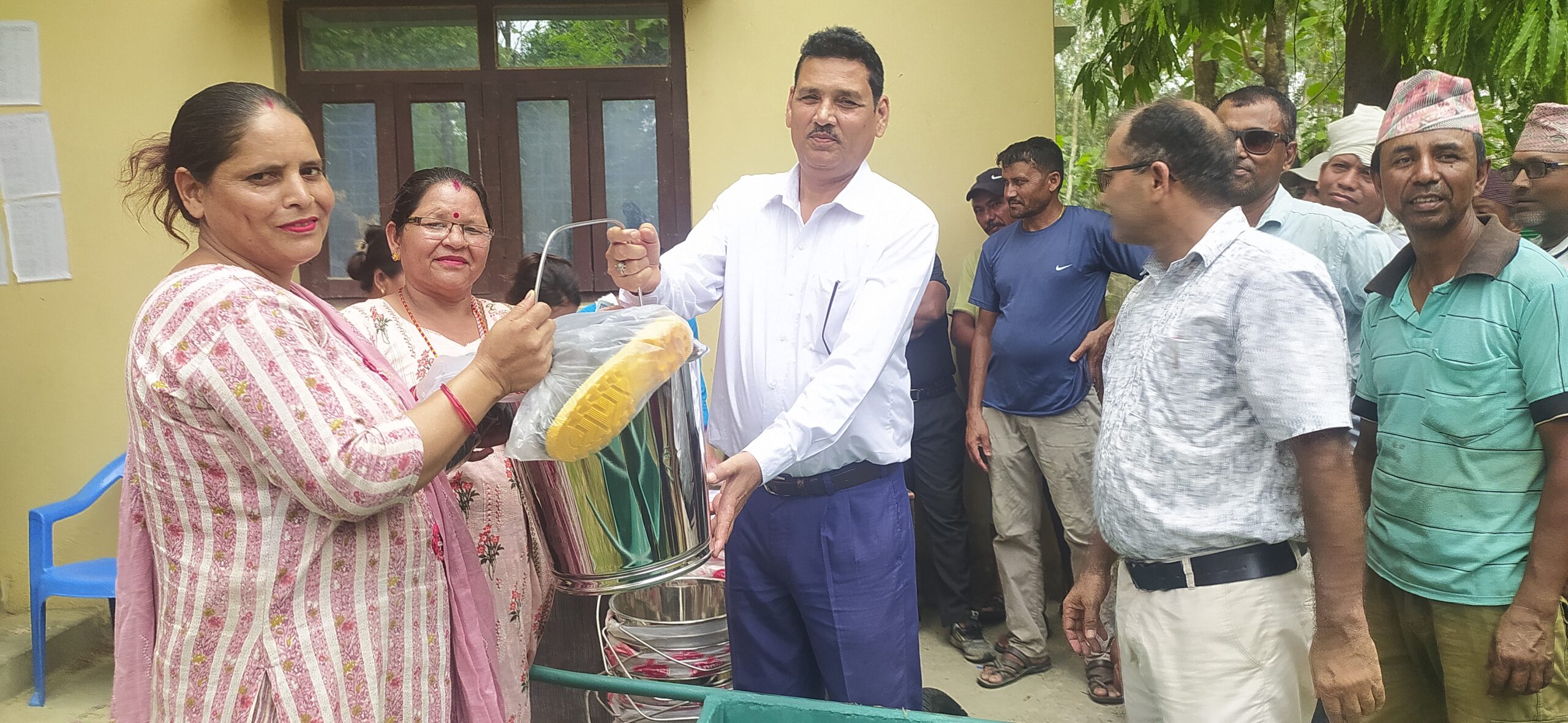 आईतवार वडा कार्यालयको प्रांगणमा भएको सामाग्री वितरण कार्यक्रमका प्रमुख अतिथि पशुसेवा शाखा कार्यालय बढैयातालका प्रमुख अशोक कुमार उपाध्यायले दुध उत्पादन लाई बढवा दिनु पर्ने भन्दै श्रम र शिपको प्रयोग गर्न सकेमा विदेशै जानु पर्छ भन्ने छैन याहाँ पनि आर्थिक विकासको सम्भावना रहेको शाखा प्रमुख उपाध्यायले बताए ।