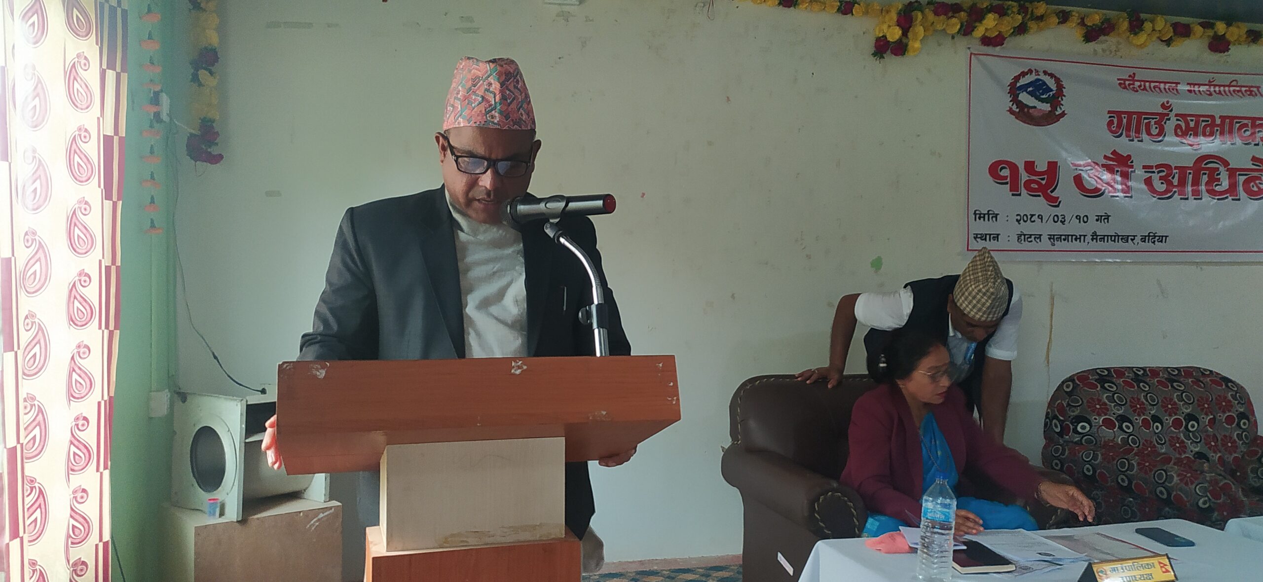 साेमबार सुनगाभा हाेटल मैनापाेखरमा भएकाे गाउँ सभाका सदस्यले गाउँ सभाका अध्यक्ष हिमालय त्रिपाठी द्वारा प्रस्तुत गरिएकाे नीति तथा कार्यक्रम महोत्वकांक्षी भएकाे भन्दै घाटा वजेटकाे नीति तथा कार्यक्रम ल्याउनु भन्दा कार्यान्वयनमा ल्याउन सकिने बजेट र नीति तथा कार्यक्रम हुनु पर्ने प्रतिकृया दिए ।