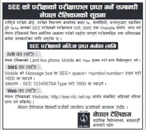 नेपाल टेलिकम, नेपाल टेलिकम, खल्ती, ई सेवा, एनसेललगायतका वेबसाइटमार्फत पनि नतिजा विवरण हेर्न सक्नेछन् । गोरखापत्र अनलाईन ।