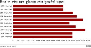 बीबीसी – विगत एक दशकको सरकारी विवरणले नेपालमा सडक दुर्घटनाबाट दैनिक रूपमा सात जनाको ज्यान जाने गरेको देखाएको छ।